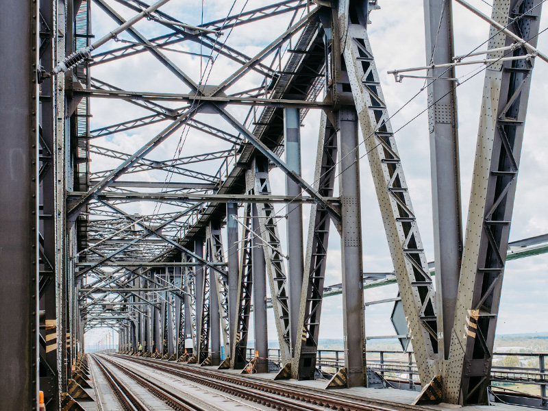 - Erweiterte Verstärkung der genieteten Konstruktion für Überfahrten von längeren Zügen ca. 190 t Stahl
