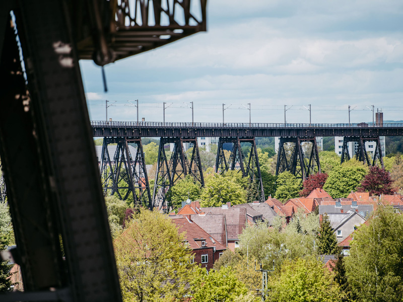 - Grundinstandsetzung der Schwebefährenschienenträgers ca. 145 t Stahl