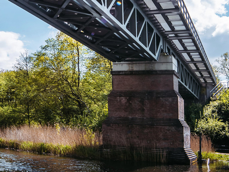 - Drei Stahlfachwerkbrücken als geschweißte/geschraubte Konstruktion hergestellt und während Gleissperrpause mit Schienenkran eingehoben