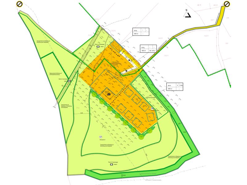 Diese Planziele wurden im Bebauungsplan übertragen. Zugleich wurde ein vorhandener Lesesteinwall zu einer gepflegten Hecke im Süden und Osten weiterentwickelt. Zur Abgrenzung der Bebauung von den nach Nordost verlaufenden Skipisten wurde eine Strauchhecke mit Einzelbäumen geplant. Somit werden sämtliche Gebäude durch L-förmige „Grünwinkel“ sowie der im Westen verlaufenden Schleppliftanlage gefasst. Zur landschaftsgerechten Einbindung werden zugleich Gestaltungsfestsetzungen getroffen. Zur Regenwasserrückhaltung, zur Brandschutzvorsorge und zur gleichzeitigen Wasservorhaltung für Schneekanonen wurde ein Wasserbecken angeordnet, welches die vielfältigen Funktionen erfüllt.